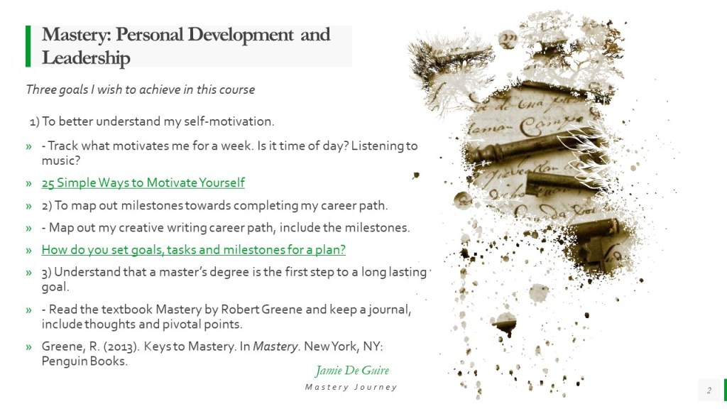 • Jamie De Guire's Mastery Journal